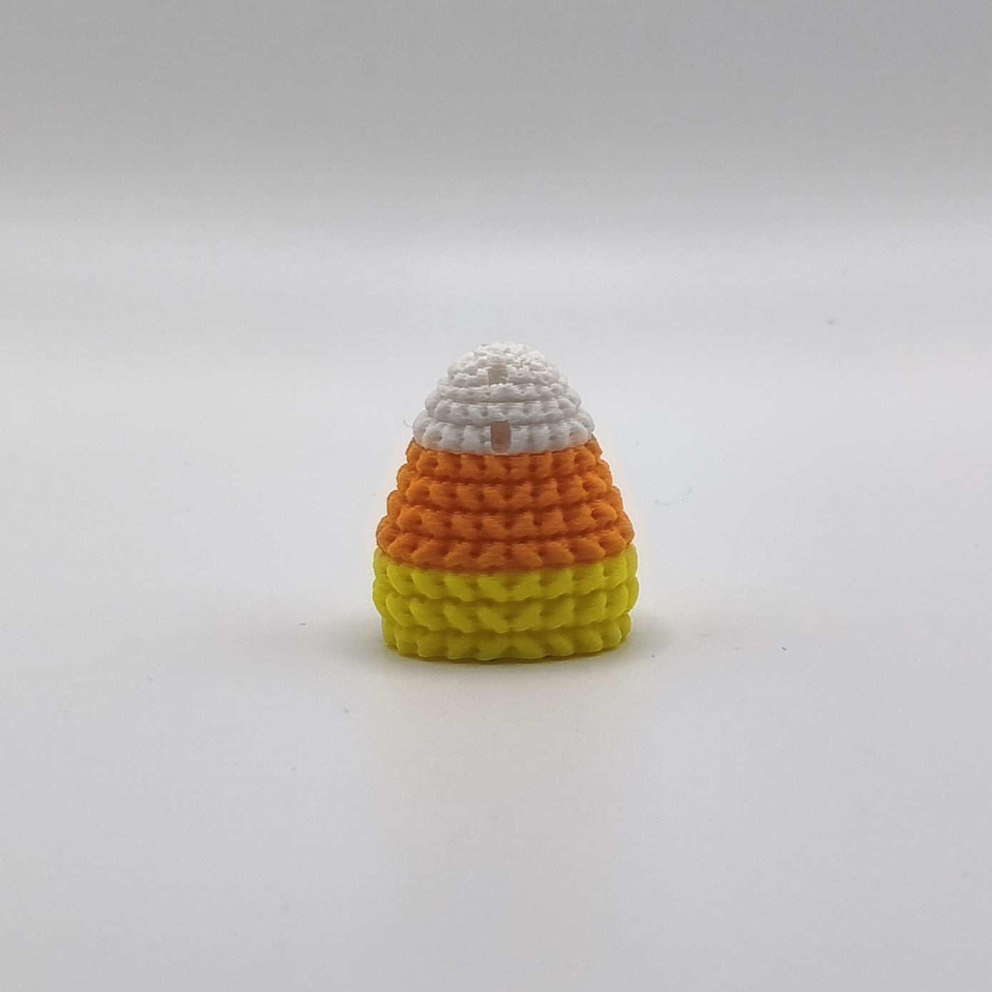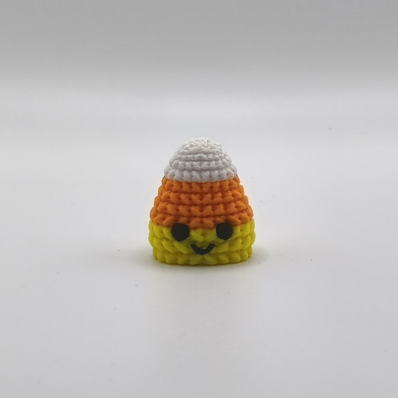 El clásico maíz dulce del Halloween se transforma en la versión más tierna y simpática que verás. Con sus colores característicos —amarillo, naranja y blanco— y una carita sonriente, este pequeño está hecho para derretir corazones.