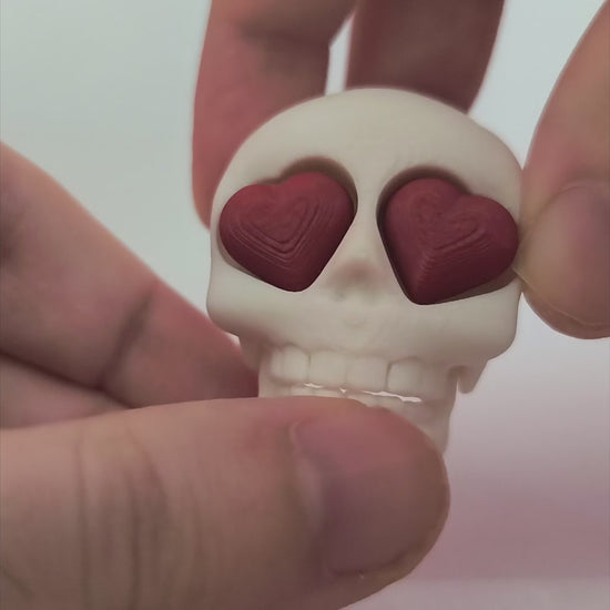 Cuando el amor llega… ¡ni los huesos se resisten! ❤️ Esta tierna calaverita con ojos de corazón es la mezcla ideal entre lo spooky y lo romántico. Y lo más divertido: al abrir su boca, sus ojitos saltan hacia fuera, dándole un toque sorprendente y juguetón.